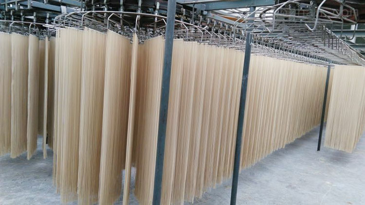烘烤時間一般控制在8小時至12小時以上。上面的是移動式的面條烘干工藝,對于產量較低的面條烘干項目,可使用間歇批次生產的固定烘干房,但是物料的烘干原則亦可大體參照上述的設定。